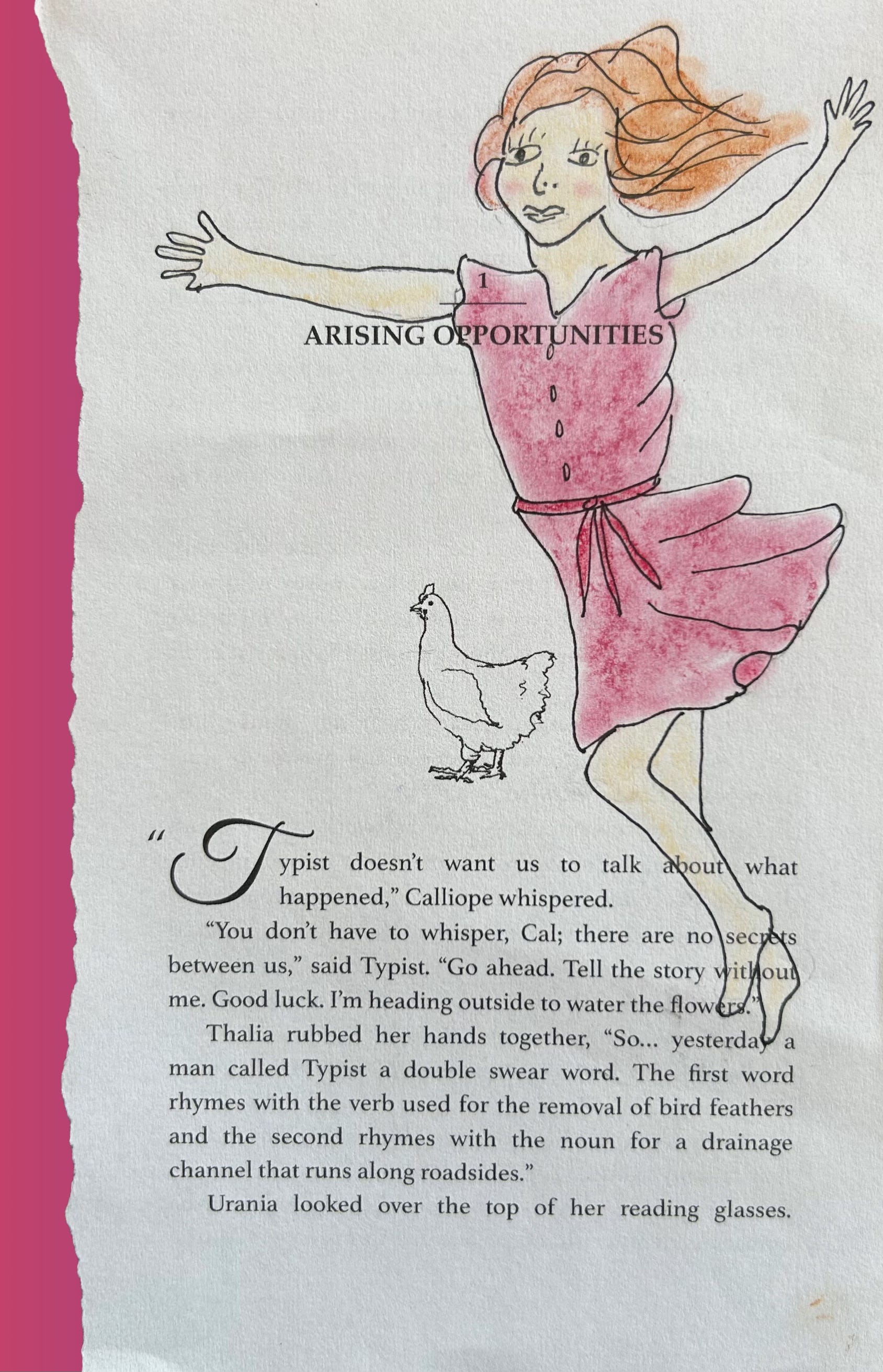 Urania pulls a chunky sweater over her head and spies Thalia barefoot — wearing a sun dress. “What on earth?! It’s ten degrees Fahrenheit with snow on the ground.”