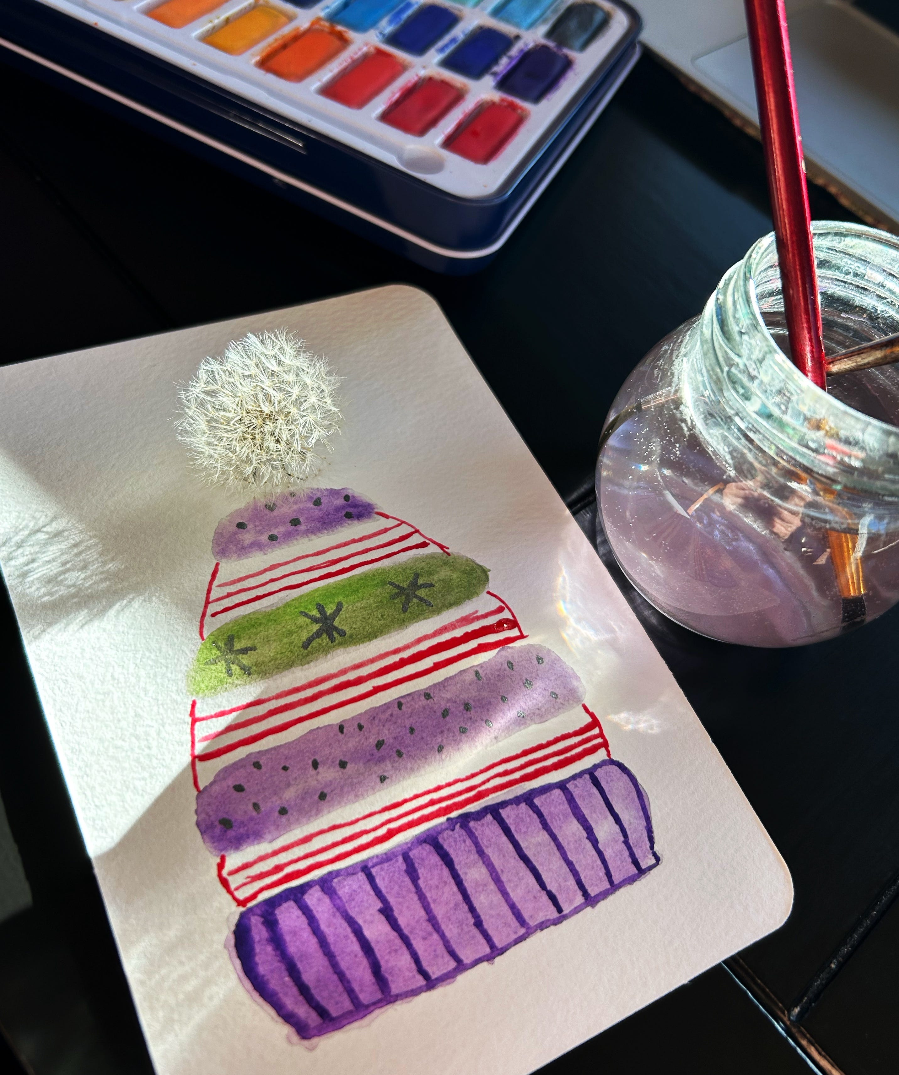 That is one fantabulous togoggan? Beanie? Watch cap? (A search for correct headwear terminology was illuminating. Oddly, the "sources" claim that we Southerners use the term "toboggan" for the hat! Very odd as few Southerners have ever seen a ridable toboggan much less ridden one. Growing up in PA that was not a hat name we used. I did enjoy more than a few toboggan rides. With a few rides to compact newly fallen fluffy snow, the track resulted in decent speeds.